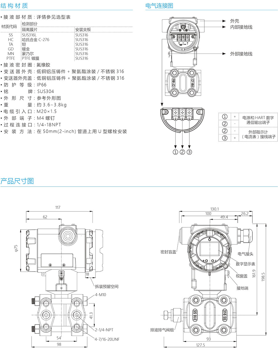 与节流装置配套,提供精确的流量测量 和控制。精确测量管道和贮罐的压力和 液位。