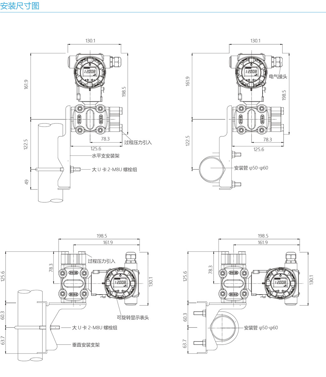 用于要求耐化学液体、耐腐蚀性液体的 压力、流量、液位测量场所。