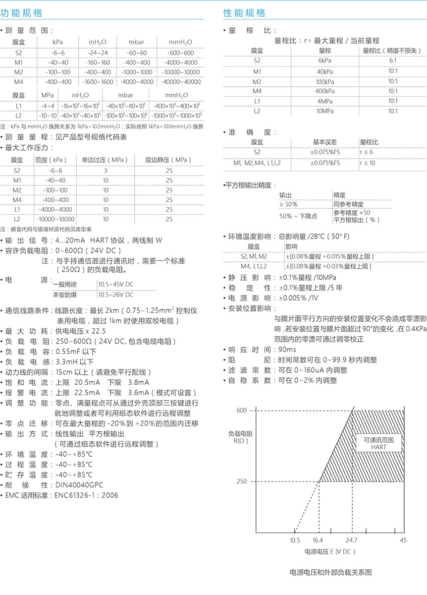 差压(流量)变送器在 -10~10MPa 的 测量范围内,可进行高准确度测量。 标准校验量程参考精度:±0.075%